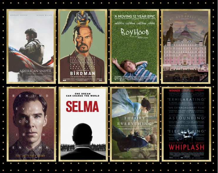 Nominees: American Sniper, Birdman, Boyhood, The Grand Budapest Hotel,The Imitation Game, Selma, The Theory of Everything, Whiplash
